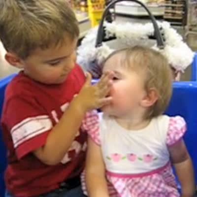 A woman tries to get a boy to give a baby girl Eskimo kisses and is met with a large amount of confusion.