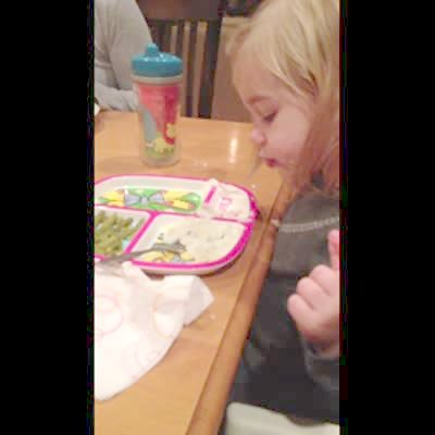 "Radish Regret" Family tricks tot girl into eating a radish, she thinks it's an apple. She makes a sour face & freezes with her hands up, & says "I don't like apples." Then they give her apple juice & she says it's delicious. Cute.